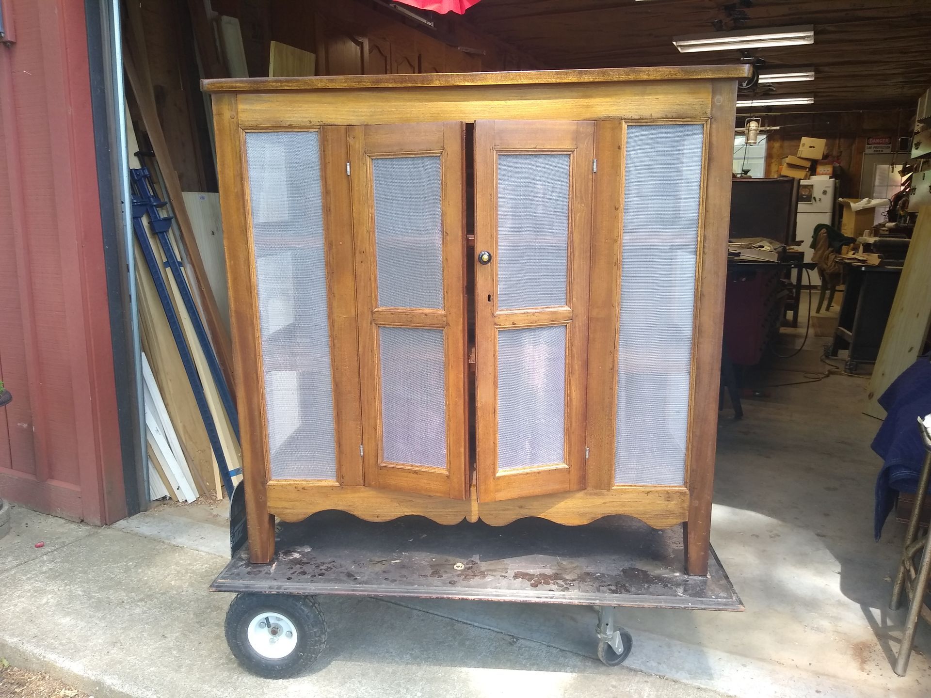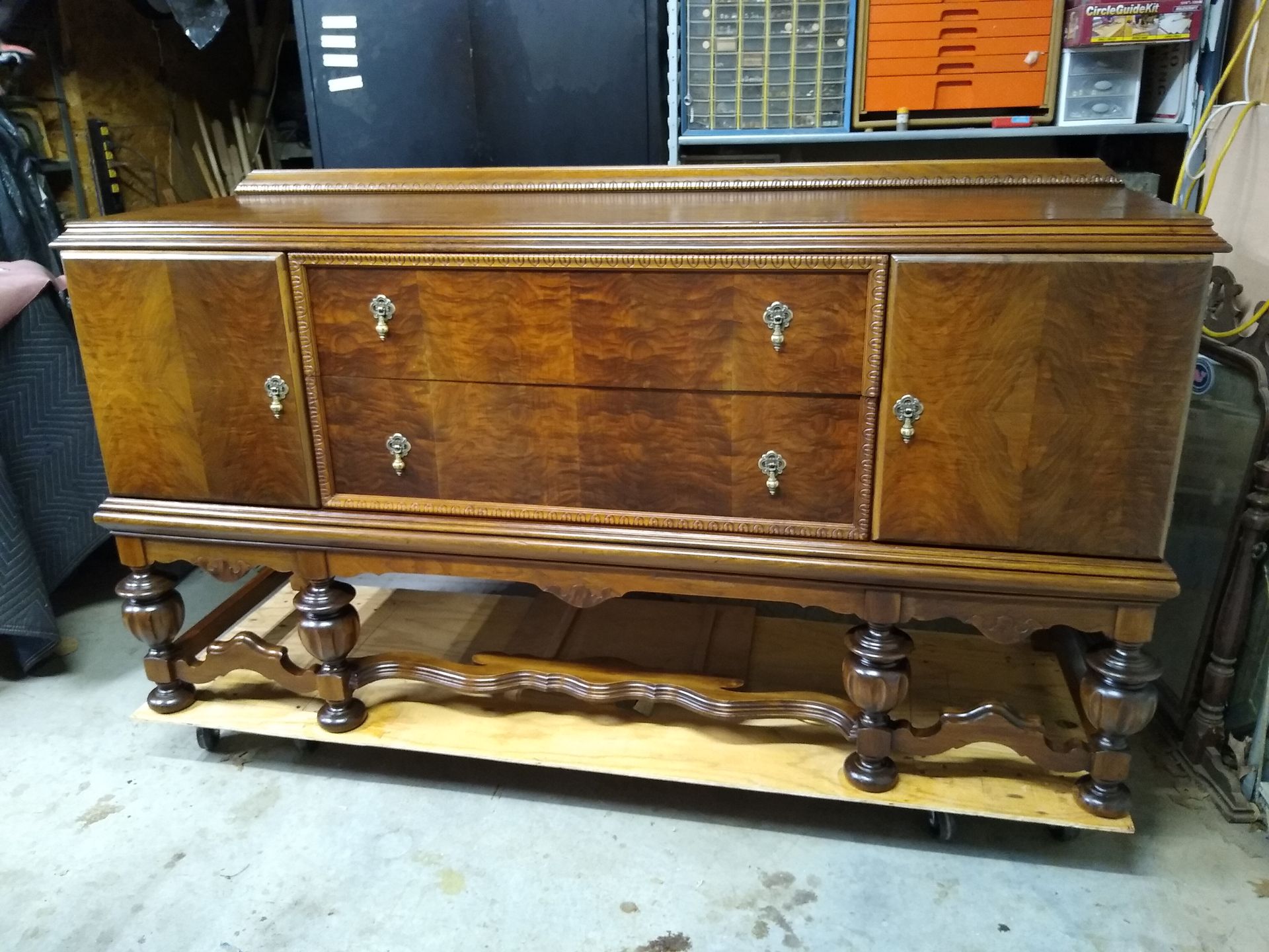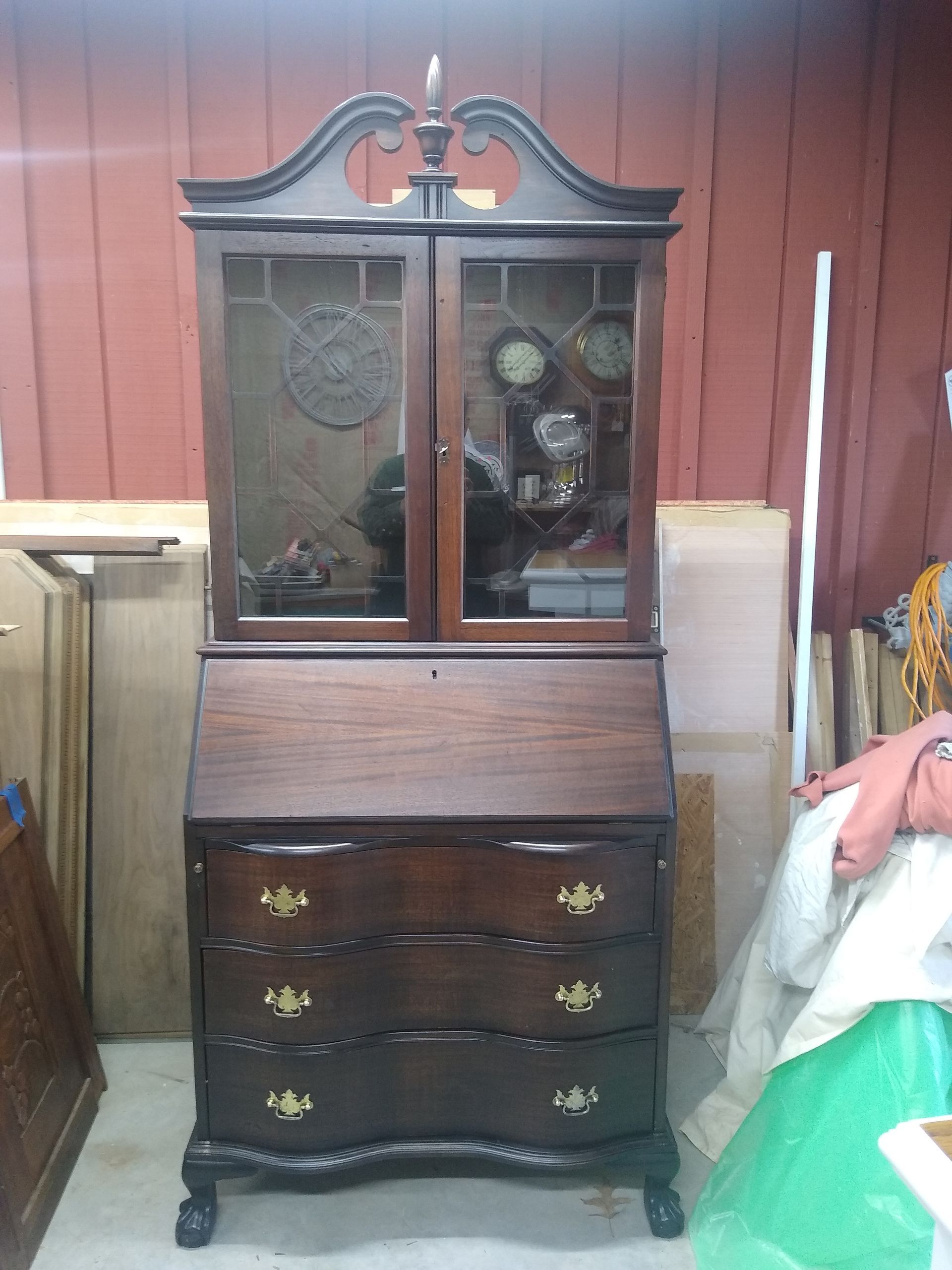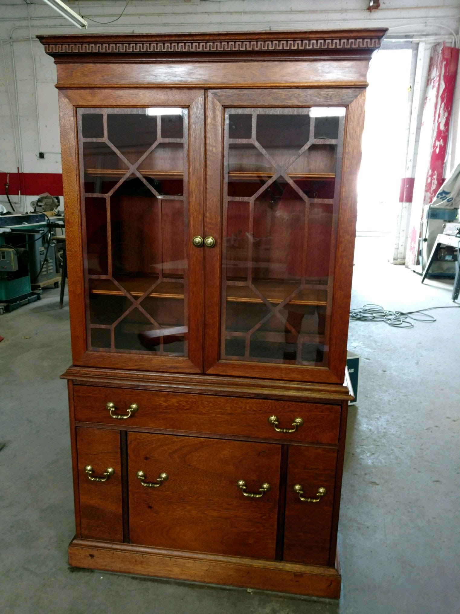 Refurbished this 60 year old china cabinet and rebuilt broken trim pieces.
