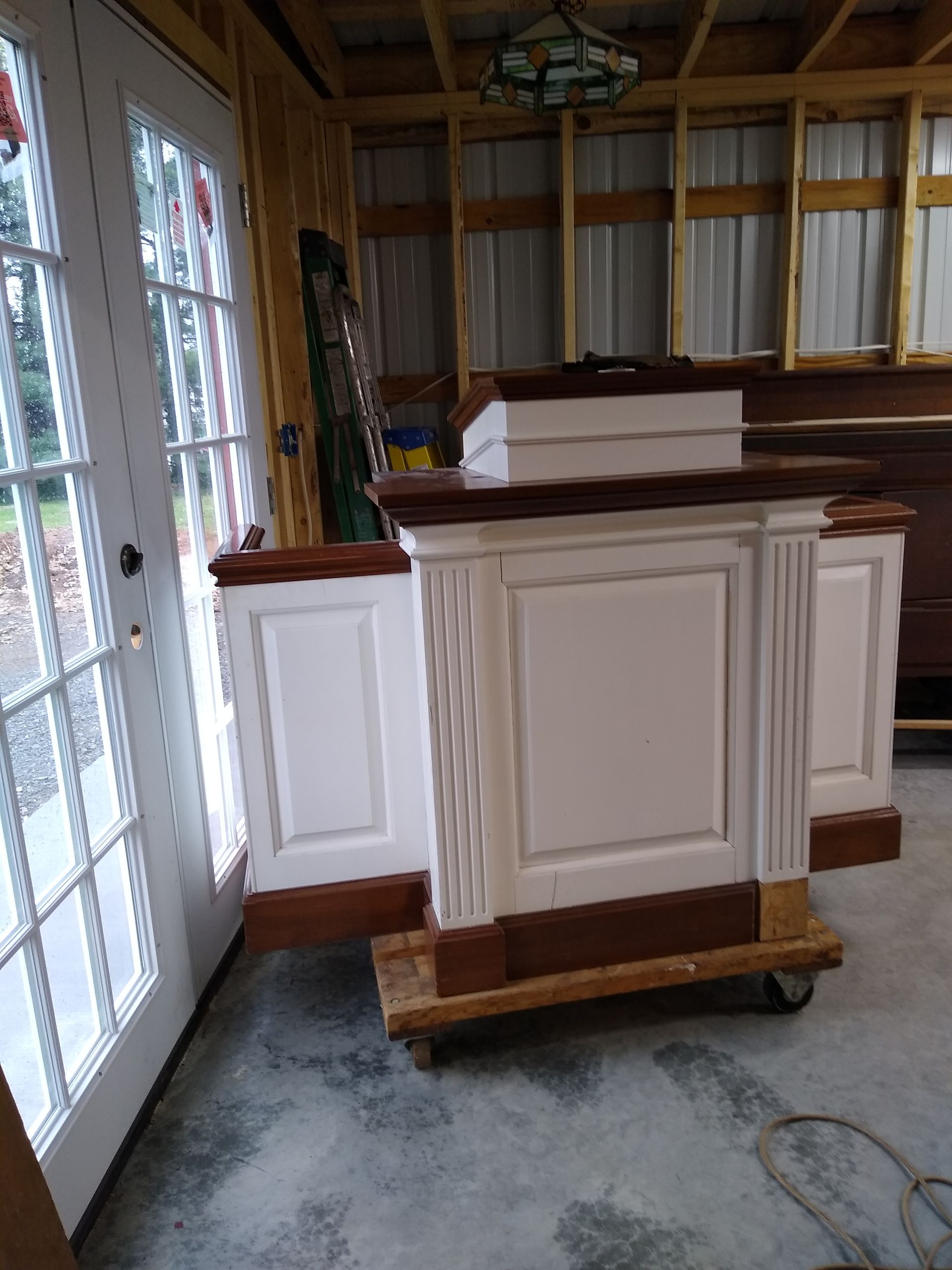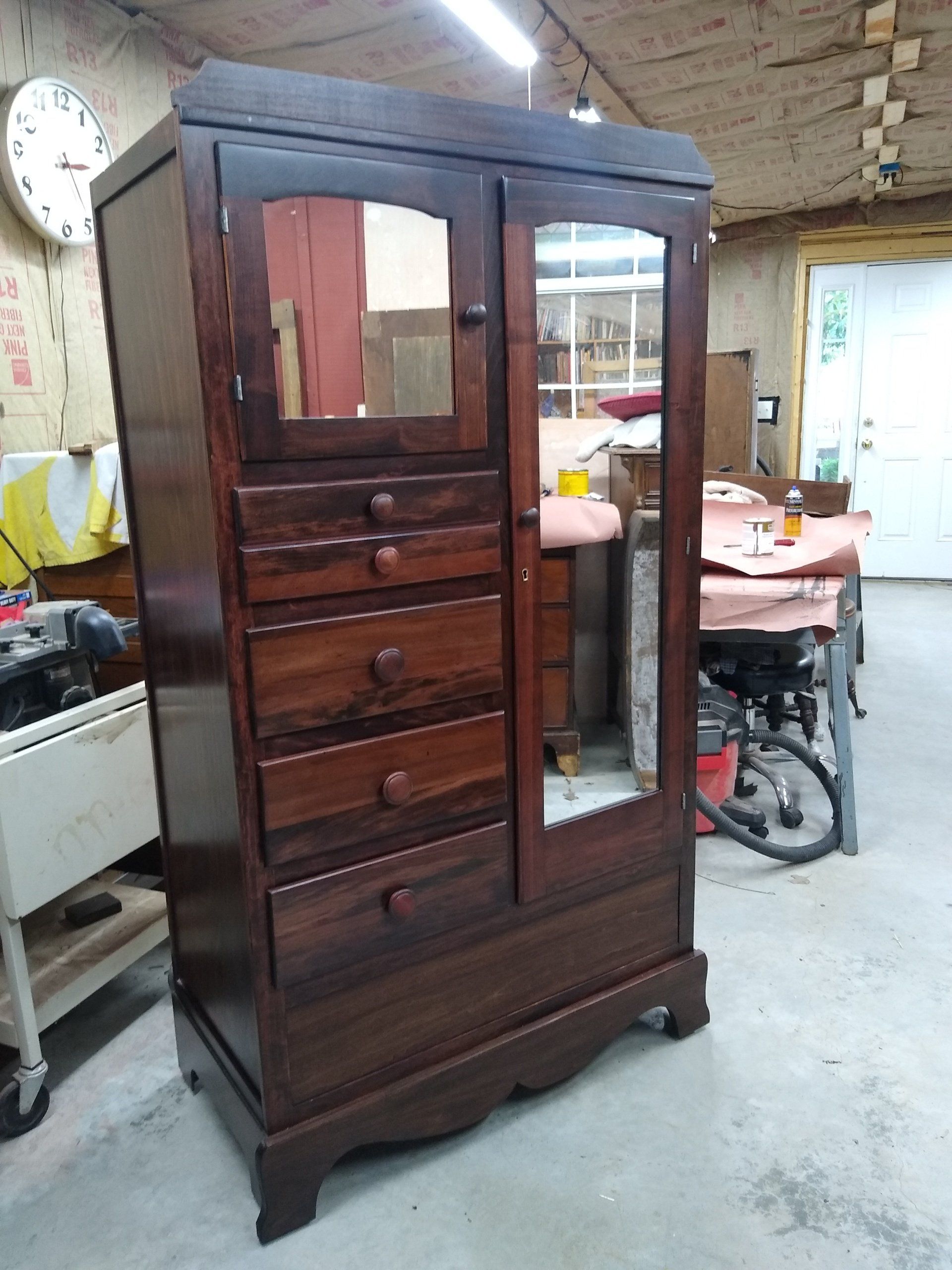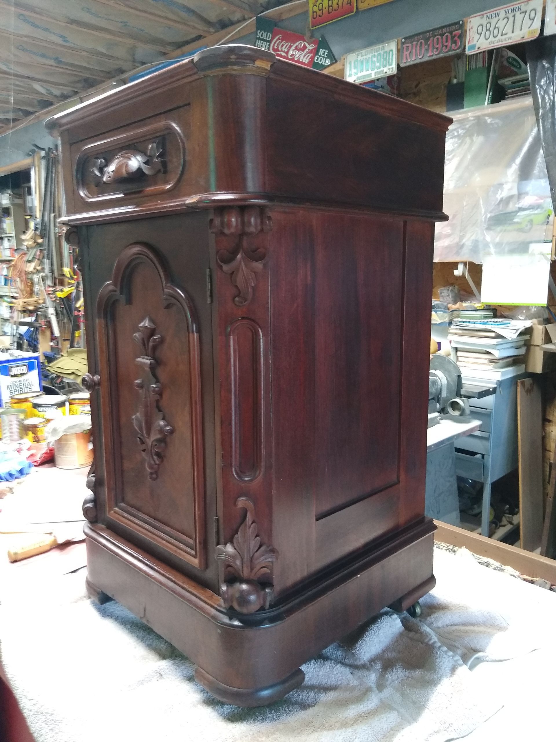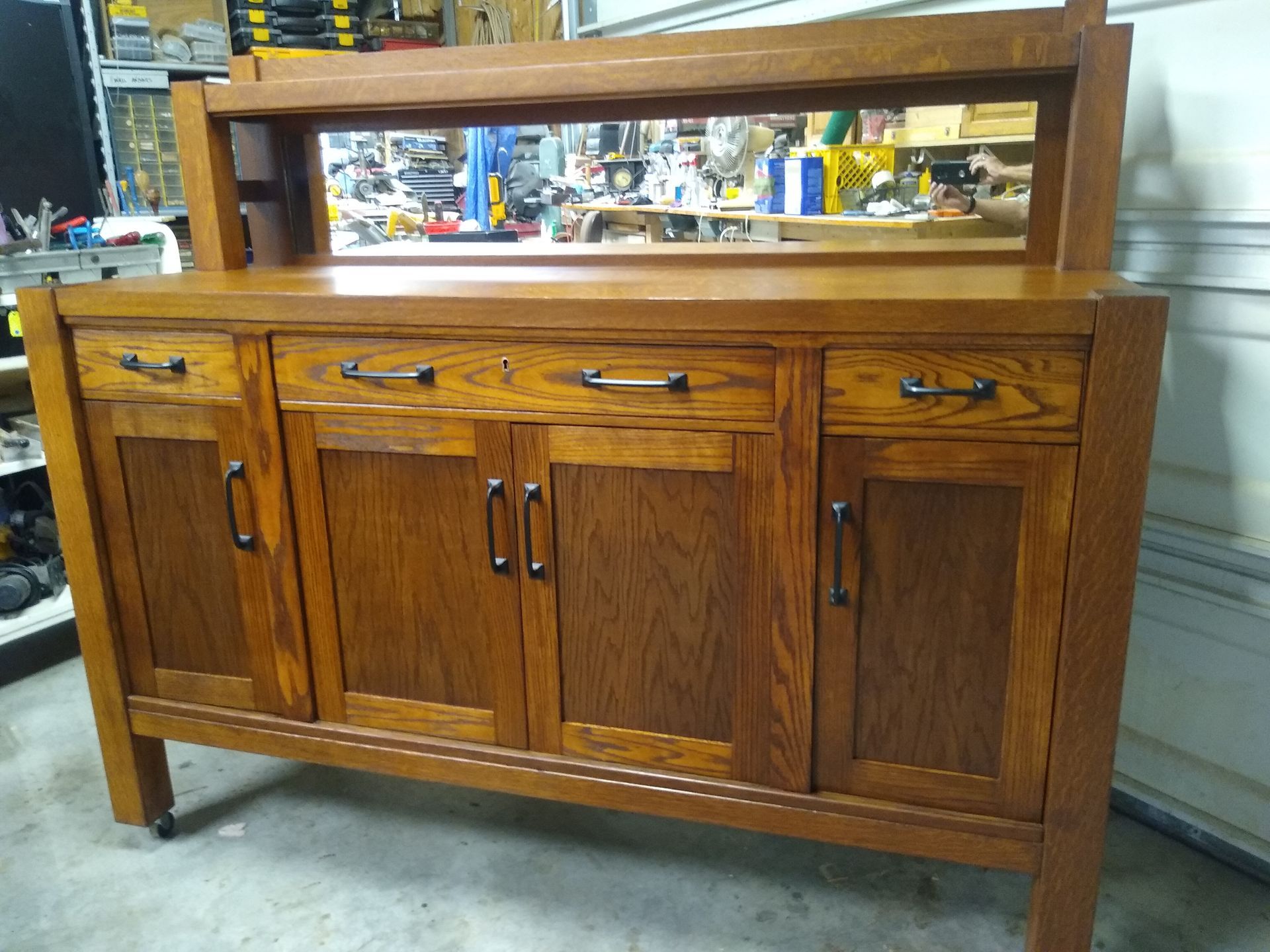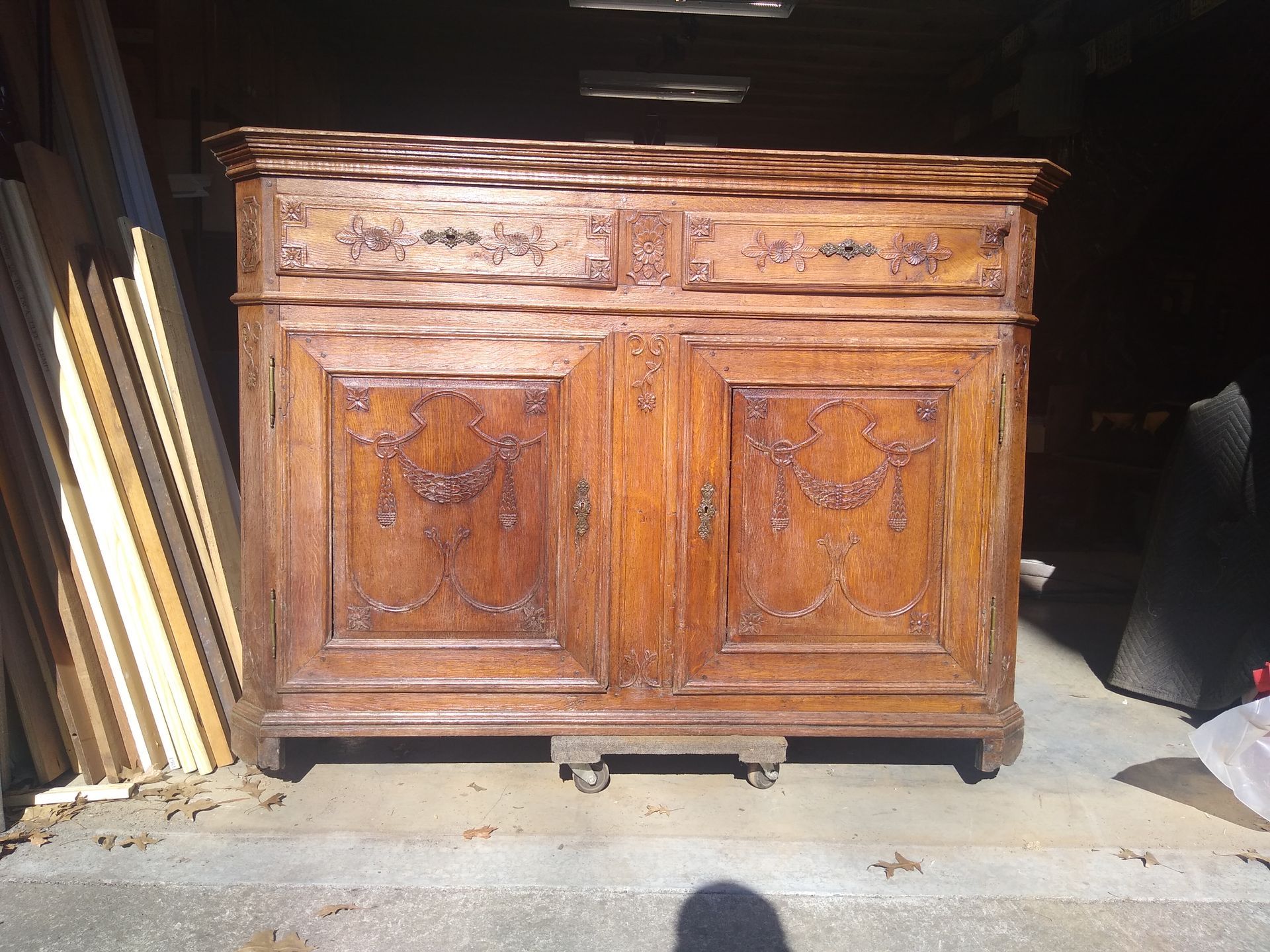 Refurbished this 60 year old china cabinet and rebuilt broken trim pieces.