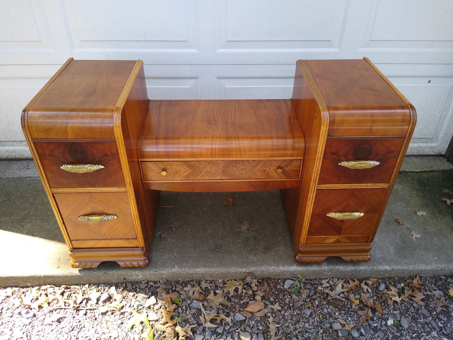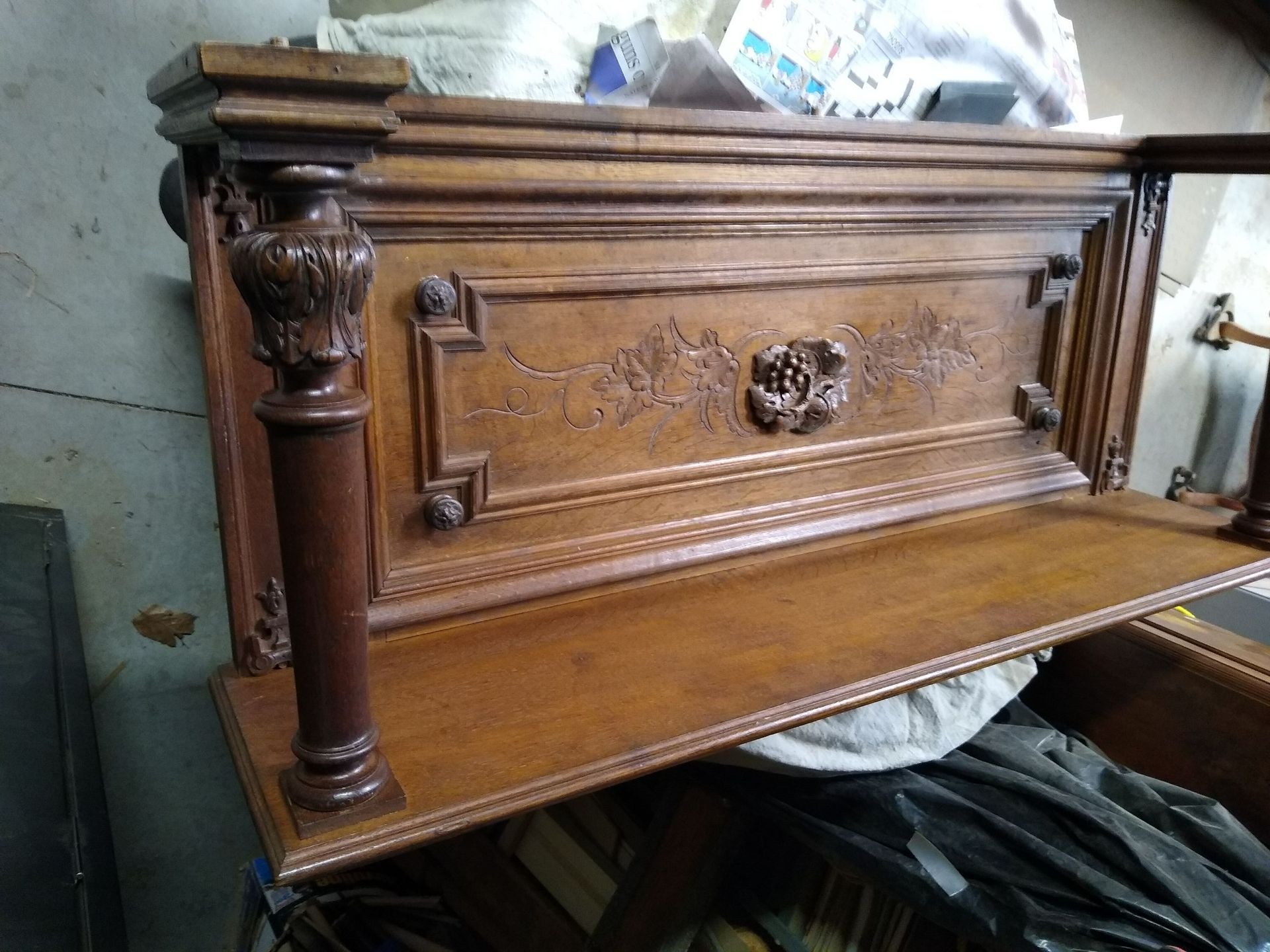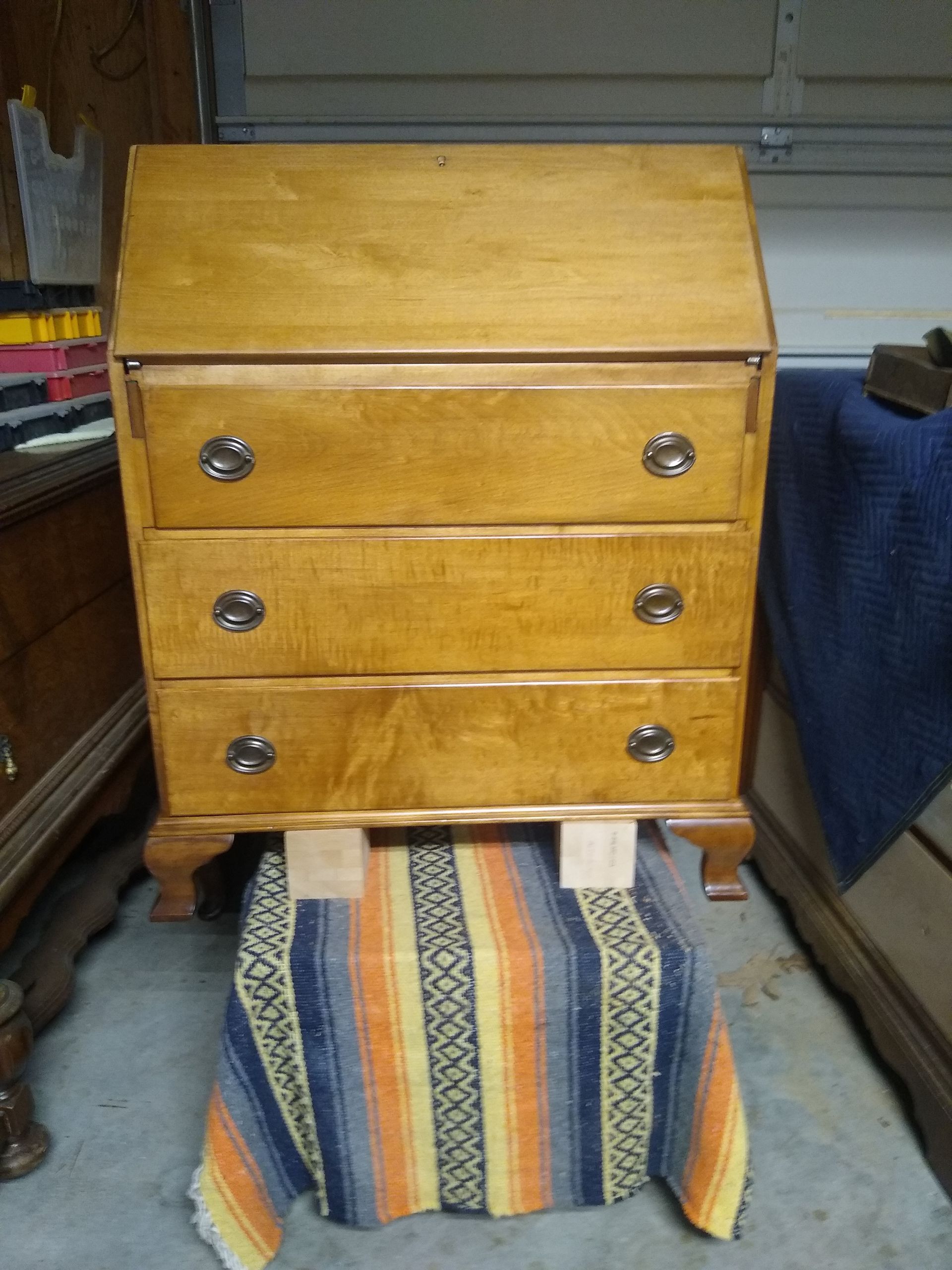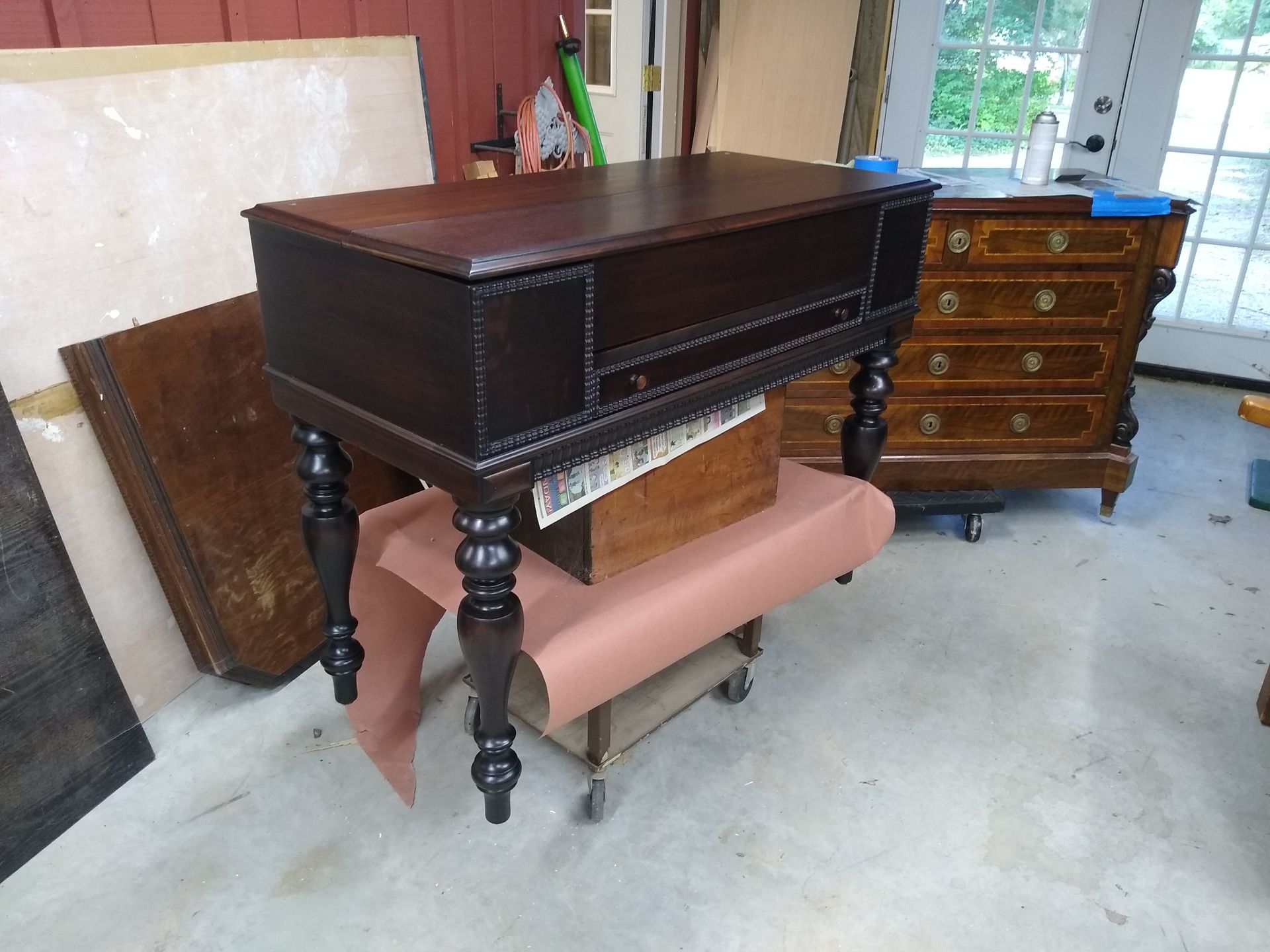 Refurbished this 60 year old china cabinet and rebuilt broken trim pieces.
