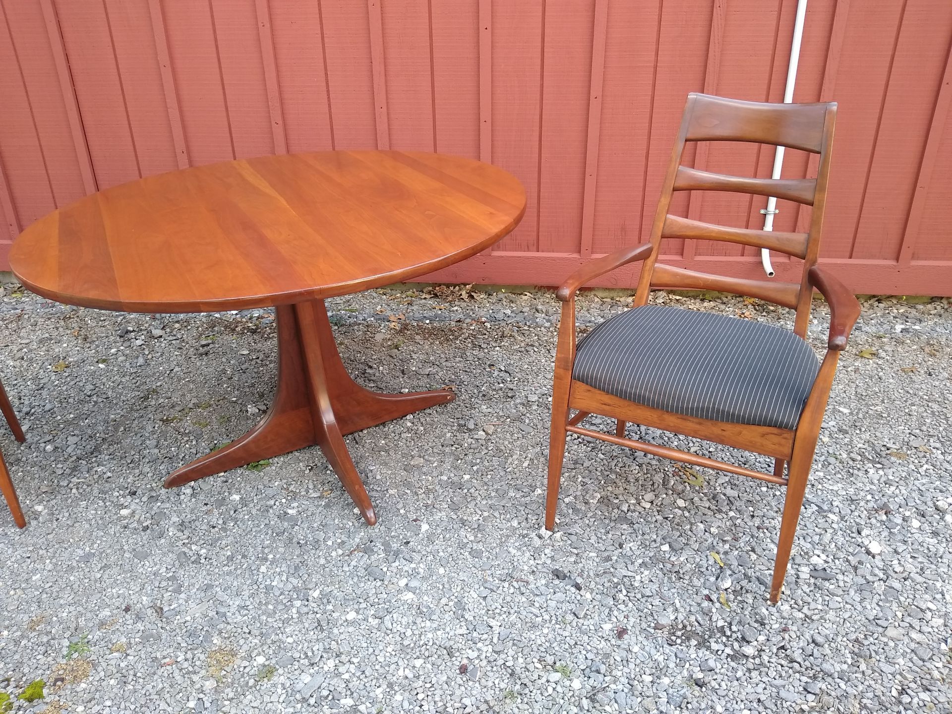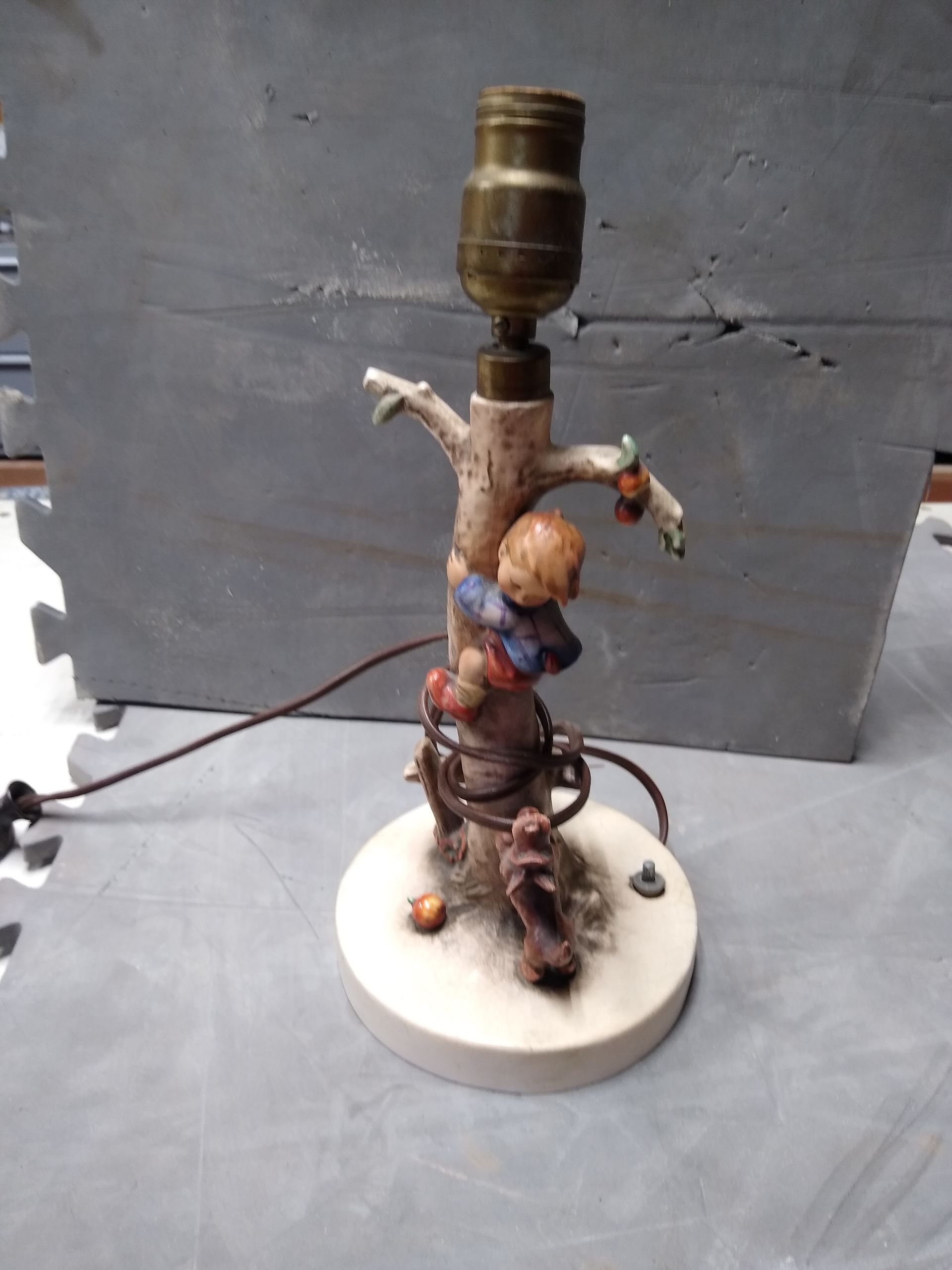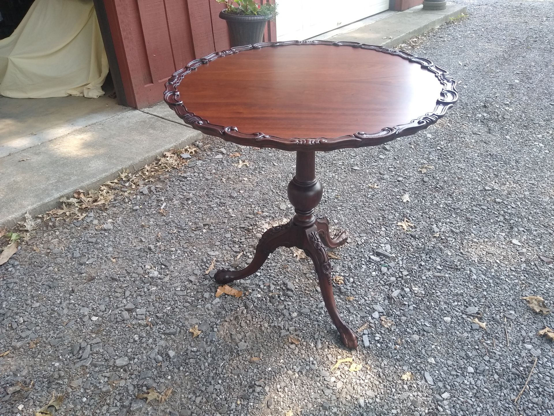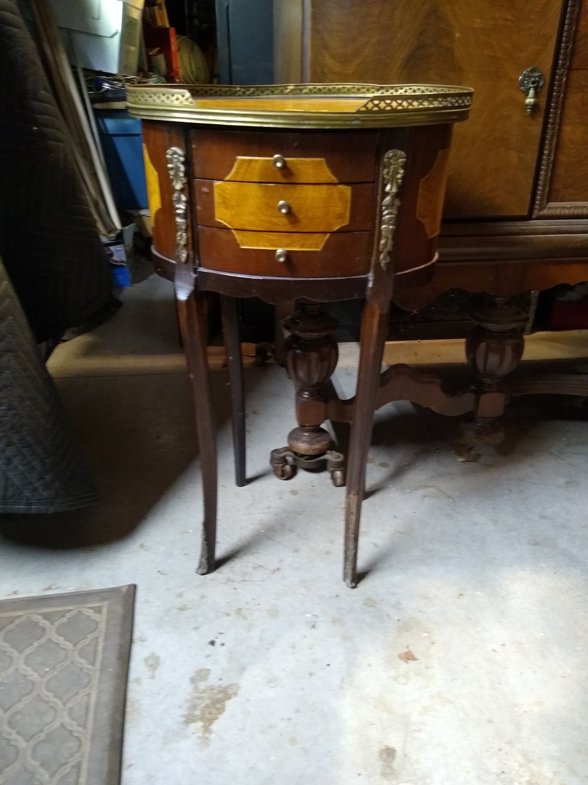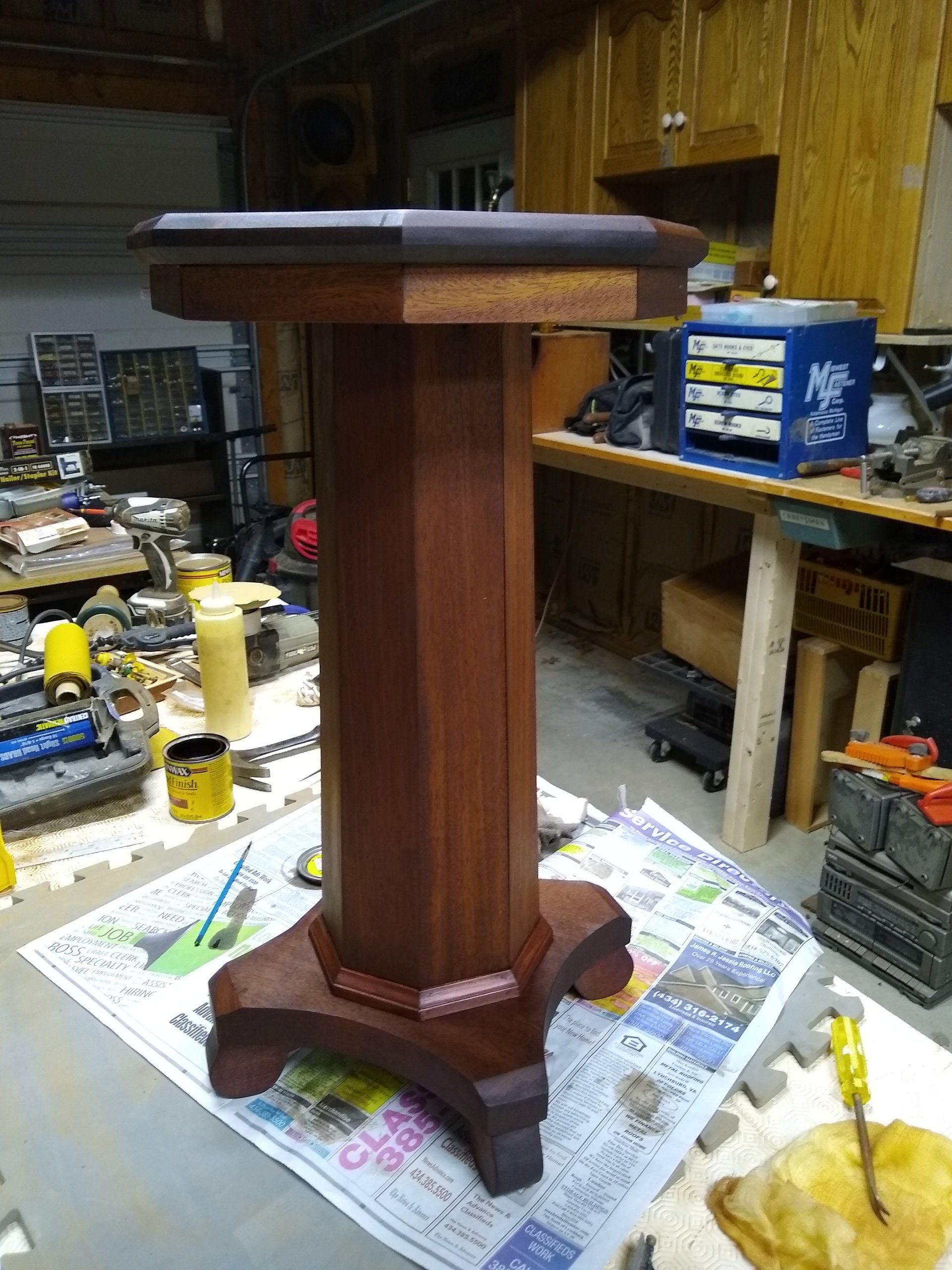 Round table was fabricated from a discarded iron table base. Circular top was shaped to fit proportionately.